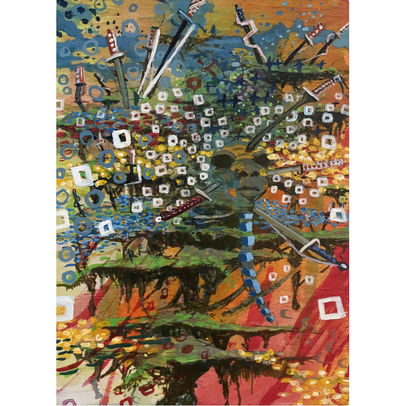 Stream of consciousness painting by Artist Jerre Teague. The viewer is given a title and an array of..