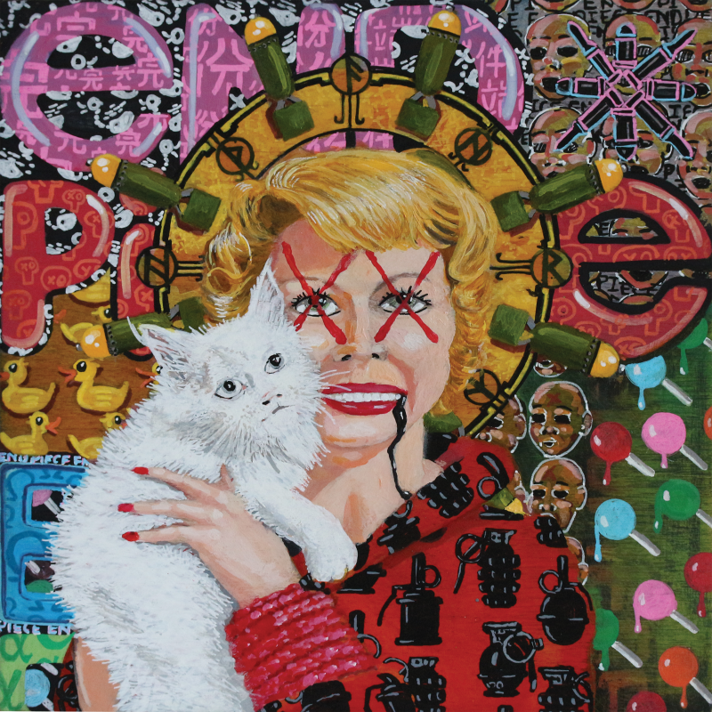 “A Brave New World” Acrylic Ink on Wood 8x8 Copyrighted 2025 Too Much! Too Fast! All At Once! N..